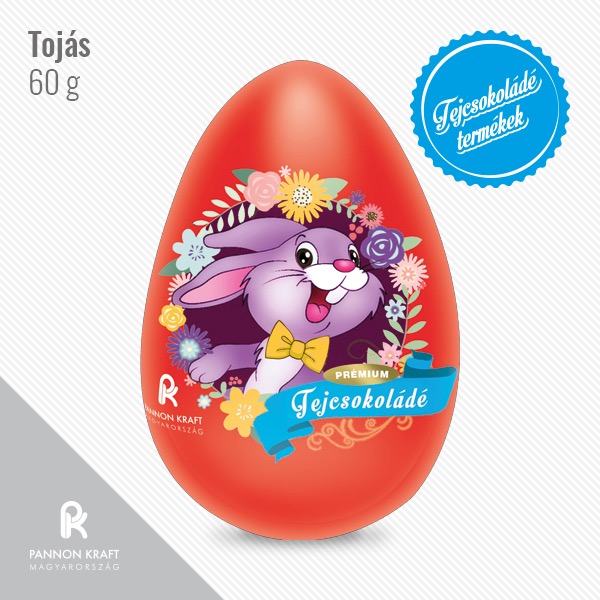 Tojás tejcsokoládé 60g karton/sor: 8 sor/raklap: 12 karton/raklap: 96 darab/karton: 14 darab/raklap: 1344